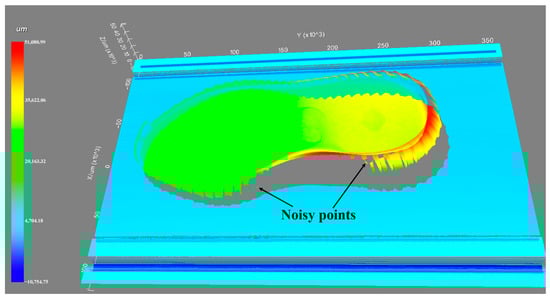 Due to the presence of external light interference in the actual measurement environment, the acquired 3D point cloud data often contain a significant amount of noise, as shown in Figure 2. This noise can originate from variations in ambient lighting, sensor errors, or other interfering factors. In order to improve the quality and accuracy of the data, it is necessary to filter the 3D point cloud data.