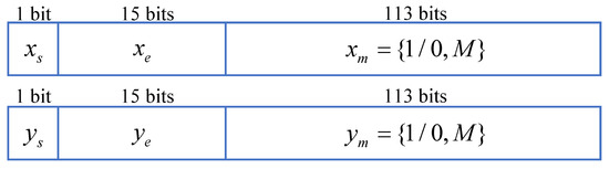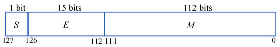 For floating-point computation, the Institute of Electrical and Electronics Engineers (IEEE) proposed the IEEE-754 floating-point standard in 1985, and the latest version was released in 2008 [28]. The IEEE-754 standard defines floating-point numbers as composed of three parts: the sign bit, exponent part, and mantissa part, represented in scientific notation as shown in Equation (1).