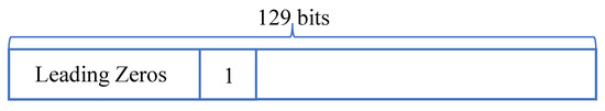 Before performing floating-point normalization, it is necessary to detect leading zeros in the fixed-point arctangent angle value. The conventional approach for leading zero detection involves sequential logic, counting from the highest bit until the first non-zero position is found. However, implementing this structure generally results in significant area and power consumption and is not suitable for this application, especially when there are a large number of leading zeros, requiring multiple detections and significantly slowing down the computation speed. Reference [29] proposes a leading zero detection algorithm based on tree coding, which is efficient for smaller bit widths with fewer encoding and merging operations. However, in this design, the operand is 129 bits long, and applying the tree coding method for leading zero detection would inevitably lead to a long detection chain and considerable gate-level delay.