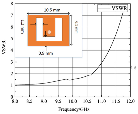 In this paper, a U-slot wideband microstrip antenna unit is designed to form a 16-element array. The configuration of the antenna unit and the VSWR of the antenna are shown in Figure 6, which demonstrates that the antenna could work in the frequency band from 8 GHz to 11 GHz.