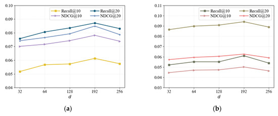 The impact of d on performance. (a) Foursquare; (b) Yelp.