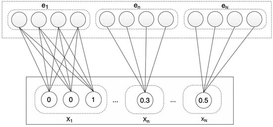 where w i represents the embedded matrix of descriptive attribute features for the station’s equipment, specifications, and behavioral attributes and the descriptive attribute feature embedding matrix of the prior model in the prior knowledge base. The x i represents the one-hot encoded vector, after processing at the input layer. This paper also maps numerical features into the low-dimensional feature space. The representation of numerical features is defined as shown in Equation (3):