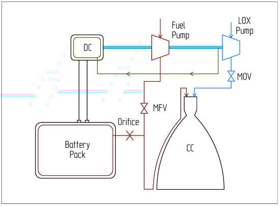Electric pumps in liquid-propellant engines provide a powerful alternative to using gas generator–turbine systems or turbopump systems. Moreover, electric pumps have high efficiency and a simplified structure that does not require high development costs, making them ideal for space applications including satellite propulsion systems [9,10]. With the recent advances in battery technology, electric pumps have become viable for launch systems as well [11]. Details on the design of liquid-propellant rocket engines that employ electric pumps can be found in [12]. The reliability of the propellant supply system for such engines was noted in [13,14,15].