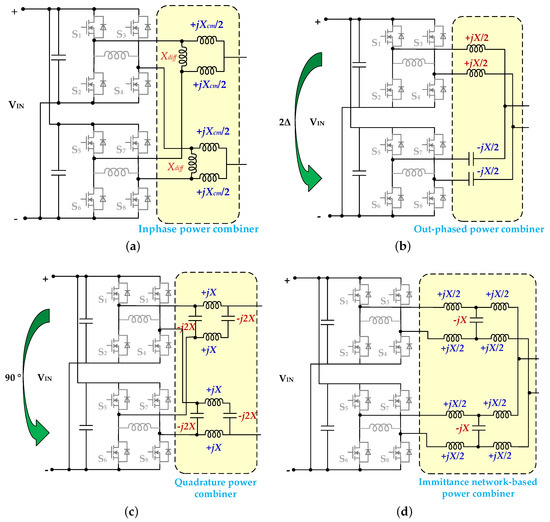 - Maji, S.; Etta, D.; Afridi, K. Design and Comparison of Power Combining Architectures for Capacitive Wireless Power Transfer Systems. In Proceedings of the 2022 IEEE 23rd Workshop on Control and Modeling for Power Electronics (COMPEL), Tel Aviv, Israel, 20–23 June 2022; pp. 1–6. [Google Scholar]