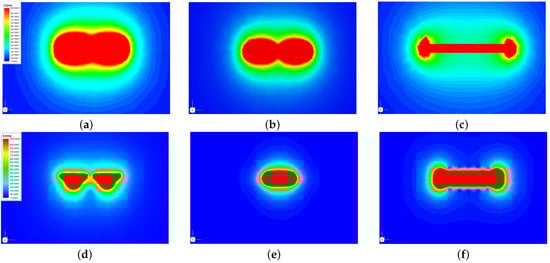 In practice, however, the CPT coupling mechanism can generate six equal coupling capacitances, as shown in Figure 5. The four extra coupling capacitances include the self-capacitance generated by the mutual coupling of the plates on the same side, such as and in Figure 5, and the cross-coupling capacitance between the “transmitter–receiver” plates of different power transmission channels, such as and in Figure 5.