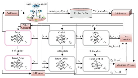 The rest of this article is organized as follows. In Section 2, the system model with SAGIN is presented. Section 3 provides the problem formulation. In Section 4, a TD3PG algorithm is designed to obtain the optimal values. Section 5 demonstrates the simulation results and performance analysis. Finally, Section 6 is devoted to the conclusions.