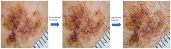 The two former modules are used to automatically identify segmentation regions in the input image, while the third module uses an explainable classifier, which is based on hand-crafted transparent features from selected segmentation regions to classify the input image. It is worth highlighting that in our proposed framework, we adopted a two-stage clustering methodology (Section 3.1), which considers both texture and shape information. The motivation behind our approach is two-fold: