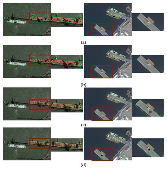 The experimental results indicate that the proposed algorithm is suitable for target detection in optical remote sensing images with dense target arrangements and significant background interference, especially when there are multiple targets with different orientations. The algorithm ensures satisfactory detection performance and significantly reduces the rates of missed detections and false alarms. Compared to other target detection algorithms, this method exhibits substantial advantages in terms of detection accuracy, target contour representation, and model generalization. However, during the training process, the network requires the cropping of high-resolution dataset images, which increases the experimental time and may result in some information loss due to the presence of numerous densely arranged targets in the images. In future research, we will further investigate the algorithm’s enhancement for detecting high-resolution images and explore different cropping methods.