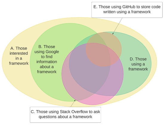 - An increased number of open-source projects developed by using a framework (visible in GitHub) will spark an increased number of developers trying to adopt and/or adapt them in their own projects who will encounter problems and ask the community about them (visible in Stack Overflow).