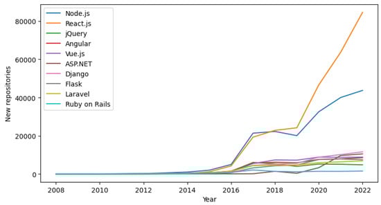 3.2. Evolution of Web Framework Popularity According to GitHub