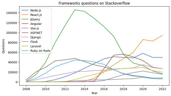 3.3. Evolution of Web Framework Popularity According to Stack Overflow
