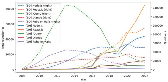3.4. Comparing Web Framework Popularity between GitHub and Stack Overflow