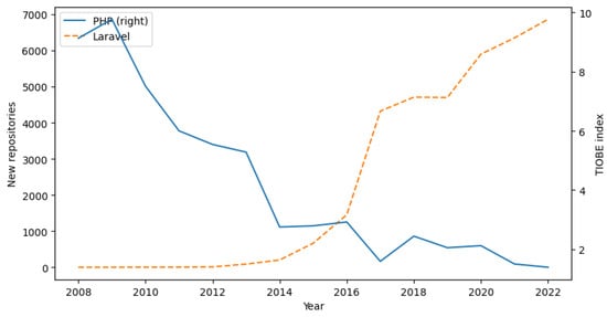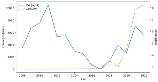 - The TIOBE Index of the language that a given framework is addressing could be used to forecast the number of newly created repositories in GitHub by using that framework for all frameworks except ASP.NET and React.js.