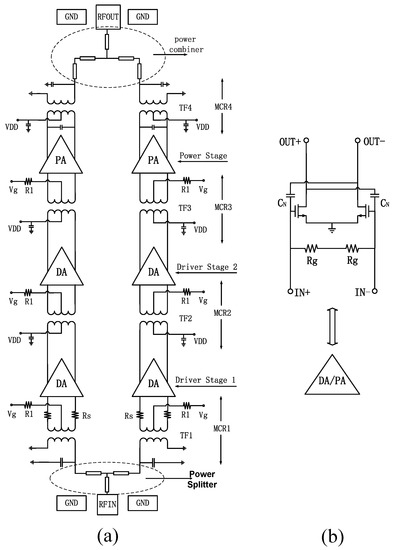 - Chowdhury, D.; Reynaert, P.; Niknejad, A.M. Design Considerations for 60 GHz Transformer-Coupled CMOS Power Amplifiers. IEEE J. Solid State Circuits 2009, 44, 2733–2744. [Google Scholar] [CrossRef]