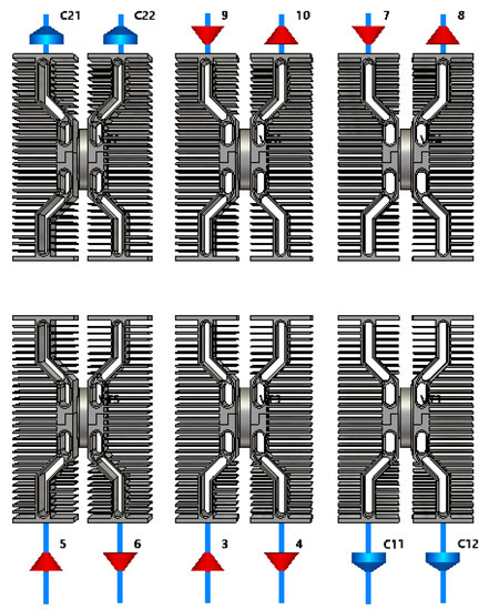- Basyigit, I.B.; Genc, A.; Dogan, H.; Helhel, S. The effect of fin types of the heatsinks on radiated emission on the printed circuit board at S-C band. Microw. Opt. Technol. Lett. 2020, 62, 3099–3106. [Google Scholar] [CrossRef]