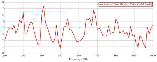 Figure 17 shows the radiation gain curve of the heatsink, the gain sweep range of 200 MHz~1000 MHz. From the figure, it can be seen that the maximum gain of the heatsink concentrated between 300 MHz~700 MHz and 860 MHz~960 MHz band radiation gain is quite small.