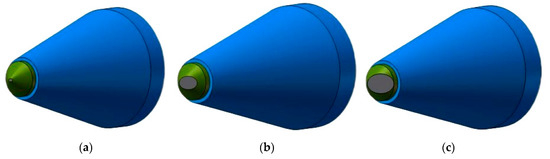 When only considering the wear of the pick tip, the wear trend of the alloy head is shown in Figure 2. As can be seen, the wear of the alloy head is like a plane parallel to the coal-rock surface layer cutting the alloy head. The coal-rock surface continuously laminates the alloy head, while the height of the alloy head being cut gradually increases. When the layer cutting height changes from 1 mm to 3 mm, a significant change in its wear volume occurs, which can be represented by the cross-sectional area of the plane and the alloy head. The larger the wear area, the more wear the alloy head has.