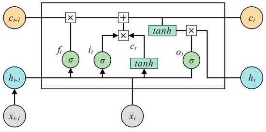 Within the architecture of an LSTM model, every unit holds a cell, which essentially acts as its memory store. The manner in which memory units in an LSTM are read and modified is controlled by three critical components: the input gate, the forget gate, and the output gate. Typically, sigmoid or tanh functions depict their operations. To illustrate, the operational process of an LSTM unit proceeds as such: at each interval, it absorbs two forms of external data-the current state and the preceding LSTM’s hidden state. Additionally, an internal input, the state of the memory unit, is also fed to each gate. Following the receipt of these input data, the gates compute the data from diverse sources, and the outcomes determine their activation status. The input gate’s input is manipulated via a nonlinear function, which then amalgamates with the memory unit state that the forget gate has handled, creating a novel memory unit state. Ultimately, the memory unit state, after being processed by a nonlinear function and dynamically managed by the output gate, becomes the LSTM unit’s output. As a result, LSTM networks possess the capacity to retain long-term dependencies as they can selectively eliminate certain data, maintain beneficial information, and relay it to the subsequent step via the output gate. The basic structure of LSTM is shown in Figure 3.
