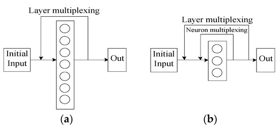 The proposed neuron multiplexing method is an improvement of the layer multiplexing method, and the diagram of the traditional layer multiplexing method is shown in Figure 2a.