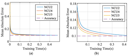 (a) Training error curve of different NCUs. (b) Partial enlargement.