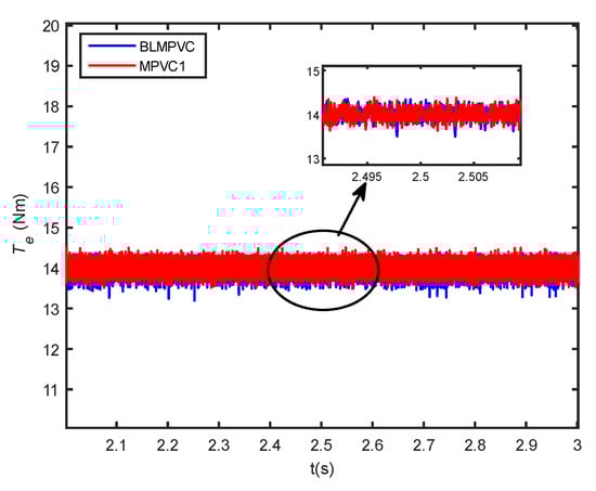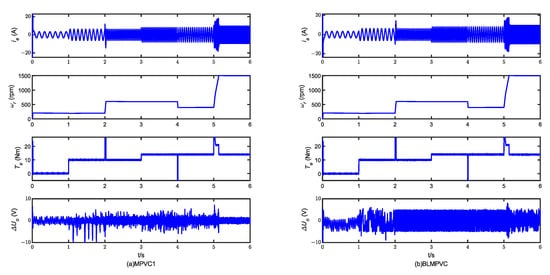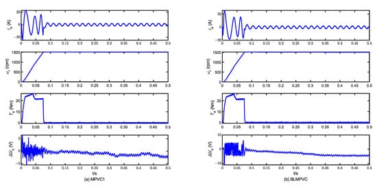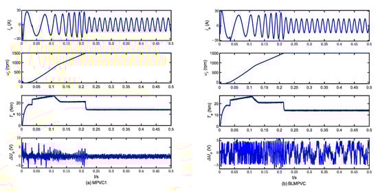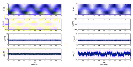 In order to analyze the control performance of BLMPVC, the simulation is carried out at rated conditions, i.e., at a given speed of 1500 rpm and a load torque of 14 N·m. To validate the control performance with state-of-the-art, the simulation is also implemented with the method in [29], named MPVC1, in this paper.