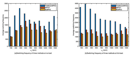 The visual comparison is shown in Figure 16. It can be seen that both MPVC1 and BLMPVC can significantly reduce the switching frequency compared with traditional MPVC. Additionally, in most cases, BLMPVC can significantly reduce the switching frequency compared with MPVC1.