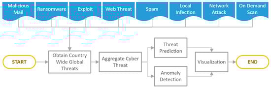 - Previous studies in [32,33,34] showed dependencies on the manual aggregation of multiple reports along with personal judgements, and the analysis of cyber professionals that potentially introduces the authors’ biasness towards certain countries. In contrast, this paper introduces a methodology that automatically obtains cyber-related information from multiple sources and provides instantaneous AI-driven insights without personal prejudice or preconception.
