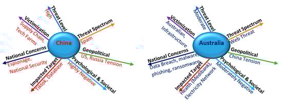 | Psychological and Societal | By measuring the negative sentiments of cyber-related Tweets, China has highly negative psychological and societal effects (Figure 6) | By measuring the negative sentiments of cyber-related Tweets, Australia has moderately negative psychological and societal effects (Figure 6) |