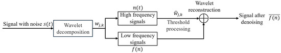 Wavelet threshold decomposition in the wavelet transform is a simple and effective noise reduction method. By processing the coefficients of each layer with modes greater or less than a set threshold separately, the noise is suppressed to recover the original signal [24]. Figure 1 illustrates the basic principle of wavelet threshold decomposition.