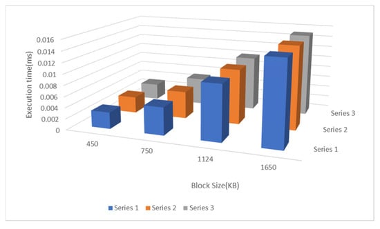 However, beyond 100 KB of data, these approaches exhibit only marginal differences. For instance, while generating a Merkle tree for a 1 MB data file, the prover’s computational time is dominated by the process, accounting for approximately 99.9% of the total time, and the results are presented in a Figure 1. The execution time varies based on different input sizes and block sizes, and we analyzed this variability to ascertain the function’s time complexity. Figure 2 illustrates the relationship between execution time (on the y-axis) and input size or block size (on the x-axis). This comparison encompasses various input sizes and block sizes, providing insights into the function’s performance.