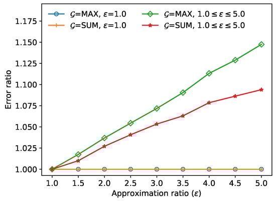 Comparison of error ratios for various approximation ratios ().