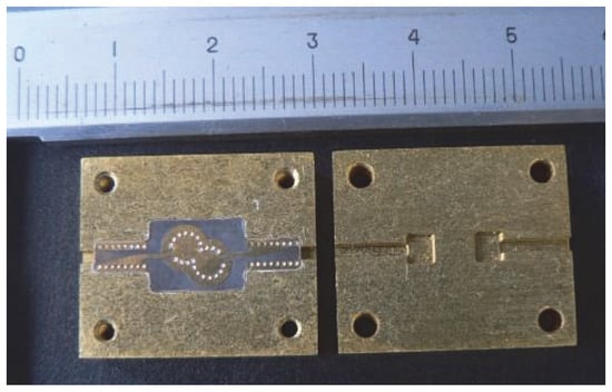 - Song, S.; Yoo, C.S.; Seo, K.S. W-band bandpass filter using micromachined air-cavity resonator with current probes. IEEE Microw. Wirel. Compon. Lett. 2010, 20, 205–207. [Google Scholar] [CrossRef]