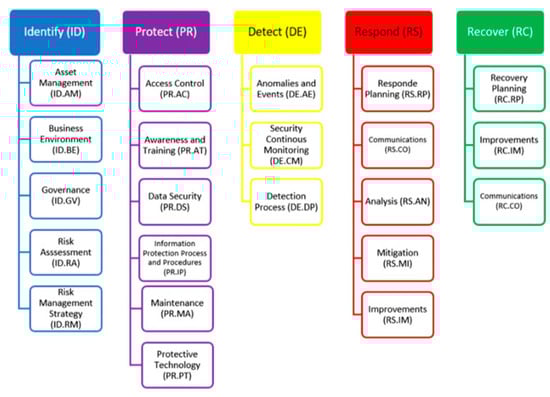 - Barret, M. Framework for Improving Critical Infrastructure Cybersecurity; National Institute of Standards and Technology: Gaithersburg, MD, USA, 2018. [Google Scholar] [CrossRef]
