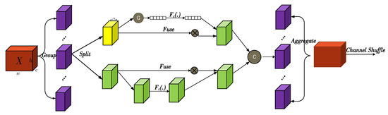 - Feature aggregation: Similar to ShuffleNetv2, a channel shuffle operation is employed to aggregate all features and facilitate cross-group information exchange along the channel dimension, resulting in the final output feature map.