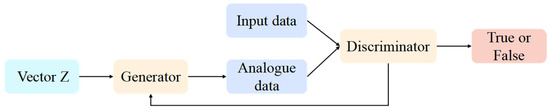 Figure 2 shows the basic principle of GANs. First, the input data samples are fed into the Discriminator for learning to extract the feature vectors; then, the random vectors are fed into the Generator, which generates analog data samples, in other words, a random number that is “faked” to produce something that looks like the input data samples.