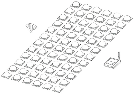 On the sensor sheet, the sensors were ultimately organized in a 12 by 6 array. This design provides extensive coverage of pressure points, ensuring accurate and consistent pressure measurement. Sensomatt Lda. (2021) [18] proposed the concept of deploying flexible pressure sensors in the shape of bubbles that operate separately and are networked under the mattress. This idea is depicted in Figure 2. In this invention, a wireless network was sought, but financial constraints pushed us to employ a cable connection for the current project.
