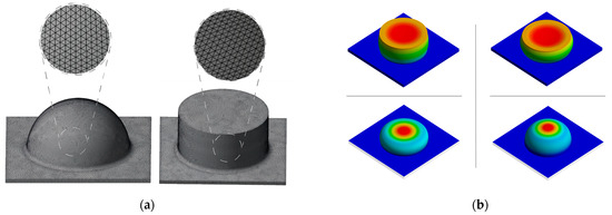 Sensor cell finite element simulations: (a) a mesh study over different shapes of sensor cells; (b) stress variation in different load cases for different sensor shapes.