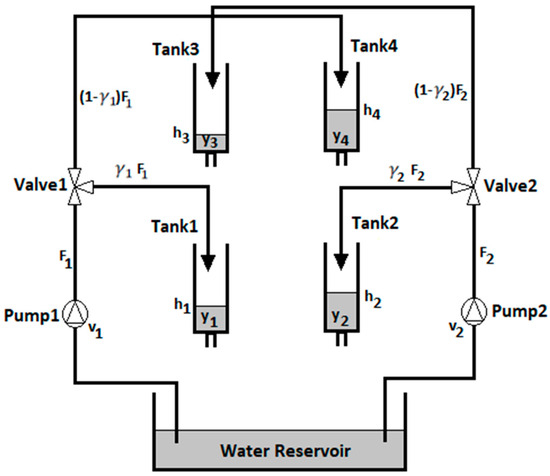 - Johansson, K.H. The quadruple-tank process: A multivariable laboratory process with an adjustable zero. IEEE Trans. Control Syst. Technol. 2000, 8, 456–465. [Google Scholar] [CrossRef]