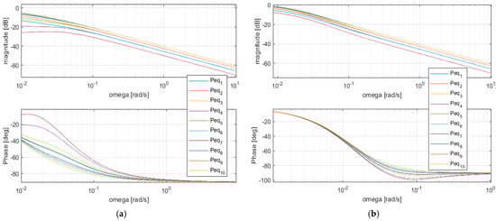 Bode diagrams of equivalent subsystems generated according to (39). (a) ; (b). .