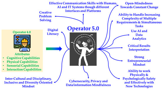 This paper will delve into the concept of “Operator 5.0,” identifying fundamental technologies that are required for the impending operator era. This vision places emphasis on human well-being, social sustainability, and resilience, all of which are crucial within the framework of future work in intelligent and robust manufacturing systems. As the evolution from the Operator 4.0 perspective to the Operator 5.0 one takes shape, the objective is to establish dependable interactions between humans and machines that encompass automation, robotics, and AI systems. This evolution endeavors to cultivate genuinely intelligent and resilient manufacturing systems that not only harness the capabilities of smart machines but also empower operators with new skills and tools, aligning with the emergent “human-automation symbiosis” work paradigm. Operator 5.0 necessitates a comprehensive skillset, blending technical prowess, adaptability, and a proactive approach towards embracing technological advancements within the manufacturing domain. The specific requirements for Operator 5.0 in accordance with the inherent characteristics of Operator 4.0 are summarized in Figure 2.