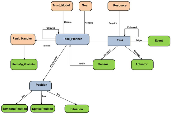 A subset of the ontology modeling the Goal, Task Planner, Trust Model, and Fault Handling.