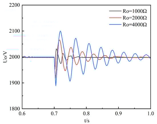 Therefore, it is necessary to optimize the eight-module paralleled IPOS phase-shifted full-bridge converters system to improve its stability under a light load. In engineering, the method of paralleling dead load on the output side is generally used to avoid the system from entering the working state of too small a load, but the selection of needs to consider many factors. When the resistance of is too small, the load will greatly increase the power consumption of the system and reduce the operating efficiency of the system. When the resistance of is too large, it cannot ensure that the system has excellent stability and dynamic performance.