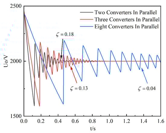 With the increase in the number of converters in parallel, the damping ratio of the system gradually decreases, the oscillation frequency of the system obviously decreases, the oscillation attenuation of the output voltage slows down, and the stability of the system deteriorates.