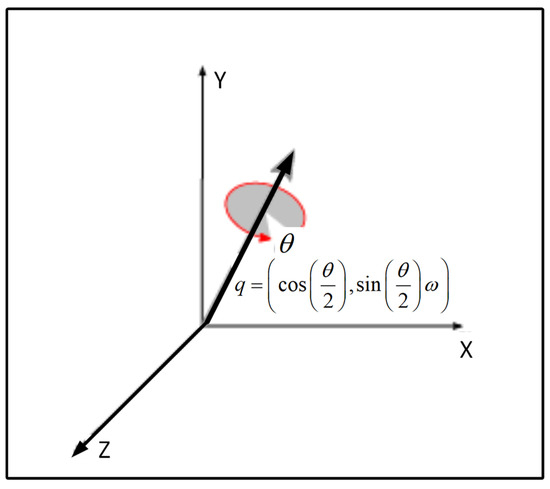 A unit quaternion can be further defined as a vector rotation operator. Rotation about a unit axis with an angle is then defined by the axis-angle representation (Figure 3)