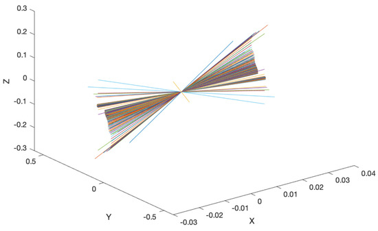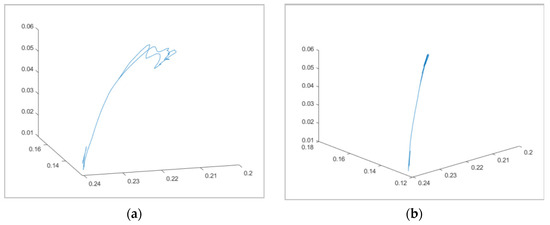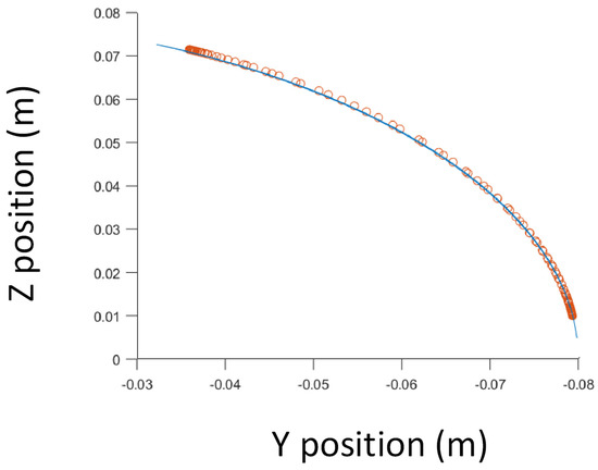 Once the IAA was defined, forward kinematics obtained the vector trajectories (Figure 9). Finally, the position of the end effector, the IMU sensor located in the palm of the subject’s hand, is given by trajectories as viewed in the oblique and on the sagittal plane.