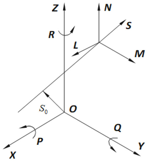 with the six Plűcker coordinates of the line (L, M, N; P, Q, R) as illustrated (Figure 7).