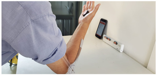 - Van Meulen, F.B.; van Beijnum, B.-J.F.; Buurke, J.H.; Veltink, P.H. Assessment of lower arm movements using one inertial sensor. In Proceedings of the 2017 International Conference on Rehabilitation Robotics (ICORR), London, UK, 17–20 July 2017; IEEE: Piscataway, NJ, USA; pp. 1407–1412. [Google Scholar]
