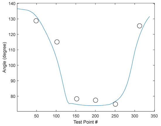 Experimental validation of the proposed method is carried out through soft exoskeletons on a dummy model. To validate our approach, the authors utilized lower limbs while modeling was conducted using upper limbs due to data availability. It is assumed that the motion tracking methodology can be applied to any joint [26,27]. These soft exoskeletons consist of wearable garments with active mechanisms to support user motions on different body parts [28]. The objective was to generate controlled and repeatable angular trajectories, thus providing the flexion-extension angles of an infant dummy leg produced by a vacuum-powered artificial muscle simulating a knee flexion-extension-controlled motion (Figure 5). To characterize the various joint behaviors covering different applications, the end effector location predicted by the quaternion model was compared against the determined angle of inclination of the leg. It is clear from the inspection of Figure 6 that the kinematic prediction of this algorithm correlates strongly with the actual end effector location.