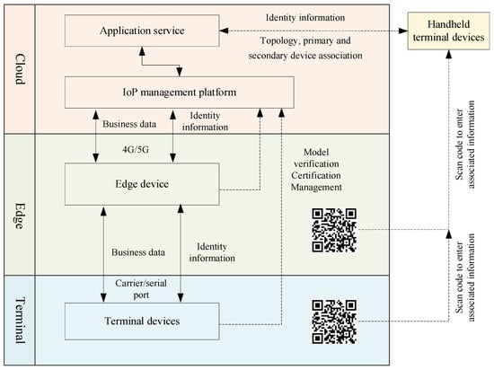 In the cloud platform, business applications correspond to the application layer of the power IoT. The IoT management platform, technical middle platform, and enterprise middle platform correspond to the platform layer. The remote communication network corresponds to the network layer. The edge devices, local communication network, and end devices correspond to the perception layer.