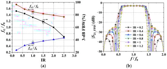 Calculated performances of the FPD with different IRs. (a) TZs and 3 dB FBW. (b) |S21_FPD|.